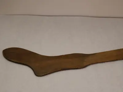 Sock stretcher! In the past, many socks were fashioned out of wool, which came from animals like sheep and was spun into yarn and knitted into socks. Because wool tends to shrink when it gets wet, this wooden sock stretcher would have helped the sock retain its size as it air-dried.