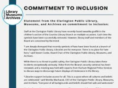 Statement from the Clarington Public Library, Museums, and Archives on Commitment to Inclusion: