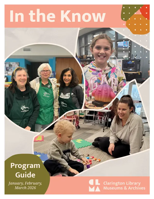 Stay In The Know with what's happening at Clarington Library Museums, & Archives through our program and services guide! Get all the information you need for what's going on this January, February, and March.