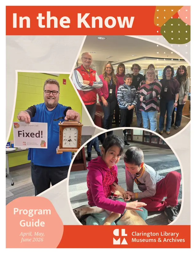 Stay In The Know with what's happening at Clarington Library Museums, & Archives through our program and services guide! Get all the information you need for what's going on this April, May, and June.